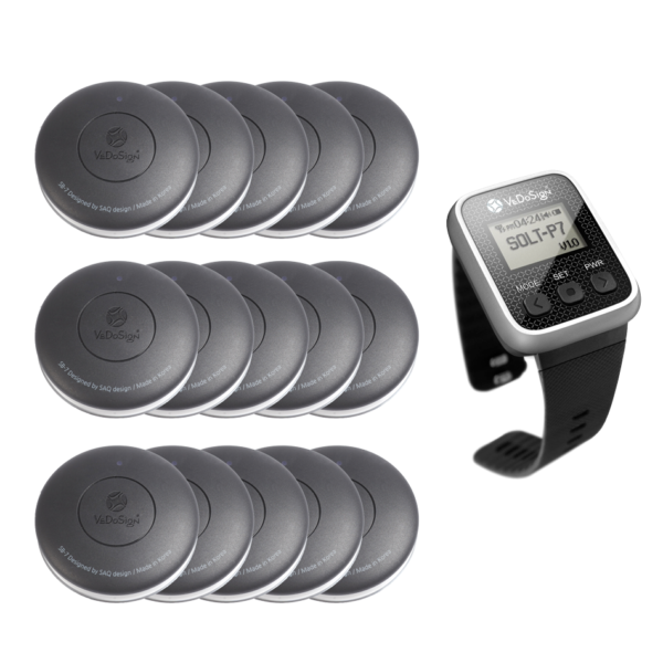 Algemeen szorg oproepsysteem met 15 knoppen + 1 pager. Dit systeem is op verschillende manieren inzetbaar. Het systeem kan dienen als medewerker oproep systeem. Bijvoorbeeld bij de receptie of de balie. De patiënt kan op de knop drukken om de receptie medewerker op te roepen wanneer deze afwezig is. Ook is dit systeem inzetbaar als zorg oproepsysteem. De patiënt kan op de knop drukken en de pager van de zorgverlener zal afgaan.