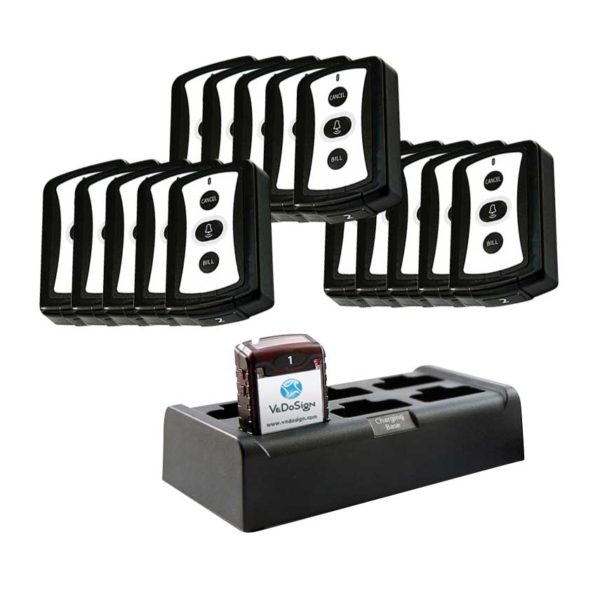 Zorg service oproepsysteem Basic 3-knops - 15 knoppen + 1 pager. Het Zorg serviceknop oproepsysteem is een systeem met ongekend veel mogelijkheden en toepassingen. Deze zorg 3-knoppen zijn door u naar wens in te richten. Werken zorgverlenend of kan als Noodknop dienen in bijvoorbeeld een verpleeghuis, ziekenhuis of zorginstelling.