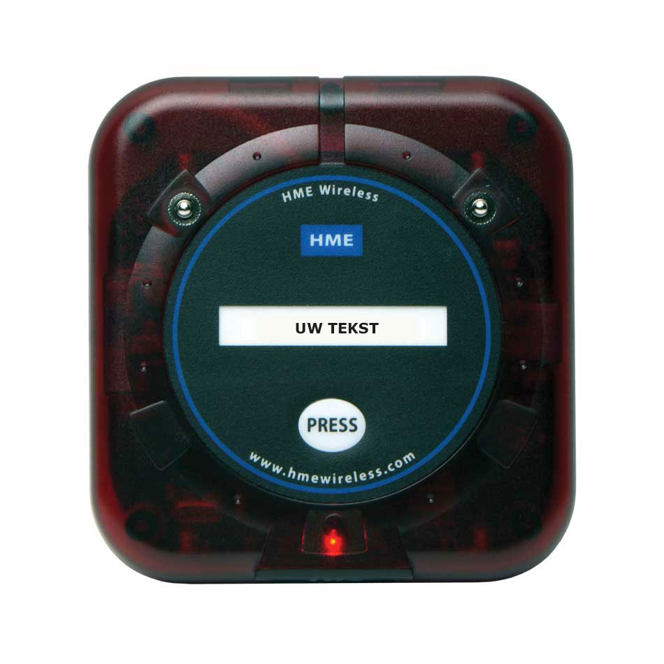 Met deze 1 knops oproepunit kunt u naar één of meerdere pagers tekstberichten versturen. U bepaald vooraf zelf de tekst die door ons in het systeem wordt gezet. De transmitter bereikt de pagers tot circa 150 meter.