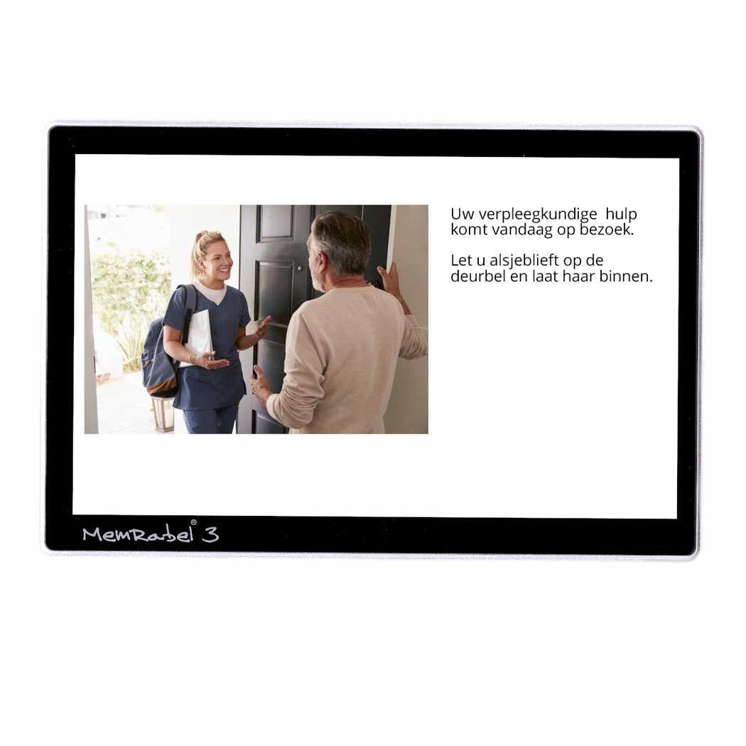 De multimedia wekker geeft de tijd weer als de normale klok. U kunt de weergave van de klok zelf bepalen. Bij de multiemedia wekker kunt u eenvoudig alarmen instellen die af gaan tijdens bepaalde ingestelde tijden. U kunt op de dag herinneringen instellen via de multi media wekker. U kunt hiervoor uw eigen media gebruiken. Dit kan een video, afbeelding of audio zijn. Deze kunnen toegevoegd worden via het USB-Station. U kunt de dagelijkse planning van personen die hier behoefte aan hebben in de multi media wekker ingeven. Dit biedt ondersteuning voor personen bij hun dagelijks ritme. De alarm wekker is zeer geschikt te gebruiken bij personen met dementie of personen met een cognitieve stoornis.