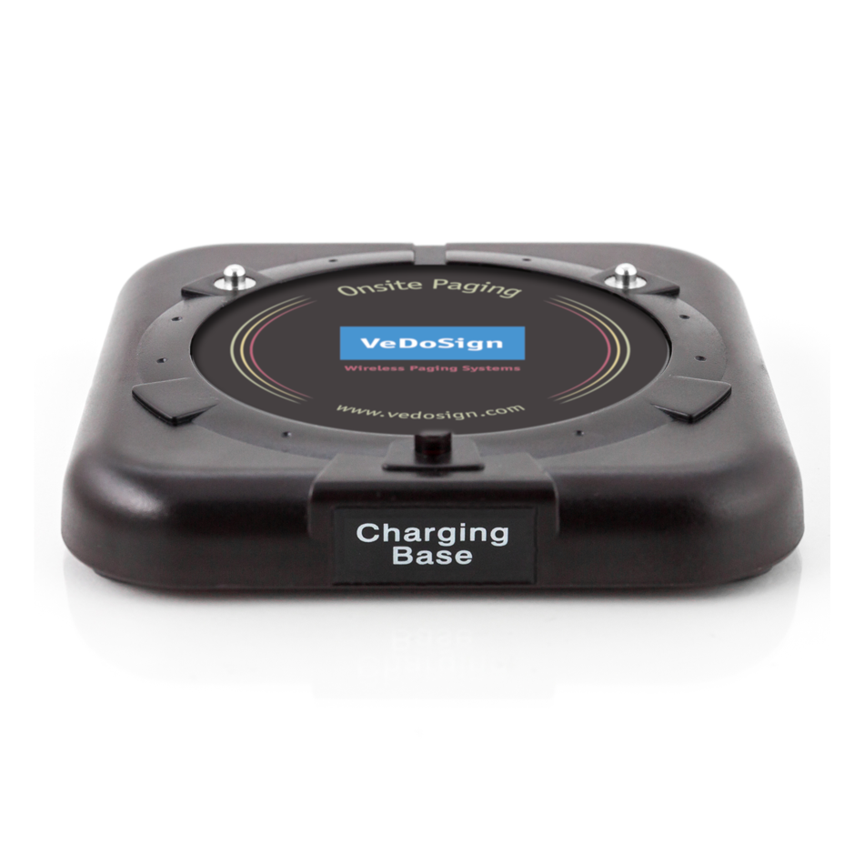 De oplader kan eenvoudig op een stopcontact worden aangesloten met behulp van de meegeleverde adapter. Extra oproepcoasters en opladers kunnen worden bijbesteld.