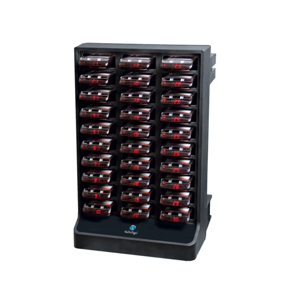 Dit compacte laadstation (smartcharger) laadt tot 30 IQ-patiëntenpagers gelijktijdig op. Geleverd met adapter en netsnoer.