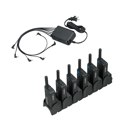 Set van 6 Kenwood PKT-23E portofoons met oortjes en multilader. Mooie complete set van 6 zeer kleine portofoons, oortjes en een multilader. De Kenwood PKT-23E is een handzame analoge portofoon. Het formaat en gewicht maken de portofoon ideaal voor retail, scholen, restaurant en andere hospitality toepassingen.