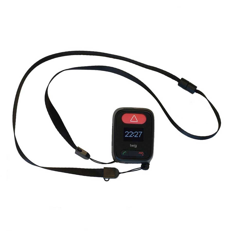 Met het zwarte TWIG noodknop draagkoordkunt is de TWIG draadloze alarmknop gemakkelijk om de nek te dragen.